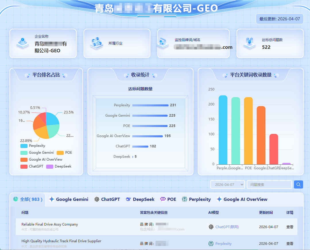 不仅包含关键词排名,还涵盖了Google图片/视频排名及AI大模型的权威收录,构建起立体的搜索流量护城河。
